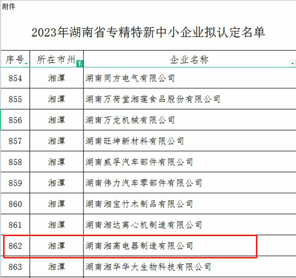 根据《优质中小企业梯度培育管理暂行办法》(工信部企业〔2022〕63号)和《湖南省工业和信息化厅关于组织开展2023年湖南省专精特新中小企业申报和复核工作的通知》文件精神,省工信厅组织开展了2023年度湖南省省“专精特新”中小企业培育认定工作,湖南湘高制造有限公司经主管部门推荐、专家评审和公示等程序,凭借在科技创新发展方面的突出成绩顺利入选。